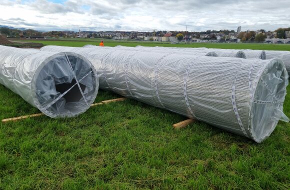 Weiter wurden ca. 280m Trinkwasserrohre mit einem Innendurchmesser von 400mm verlegt, welche im Endausbau das Pumpwerk mit der Transportleitung verbinden. Für die Entsorgung von anfallendem Schmutzwasser wurde eine ca. 230m lange Pumpendruckleitung (Doppelrohsystem, Rohr in Rohr) verlegt.