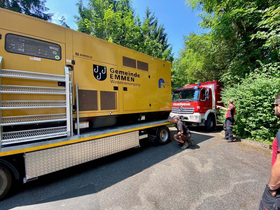 Am vergangenen Dienstag wurde von der Wasserversorgung Emmen und der Feuerwehr Emmen eine umfangreiche Übung durchgeführt, um die Sicherstellung der Wasserversorgung und die Einsatzbereitschaft des Notstromaggregats bei einem Stromausfall zu prüfen. Die Übung war erfolgreich: Auch in Krisenzeiten kann die Emmer Bevölkerung stets mit qualitativ hochwertigem Trinkwasser versorgt werden.