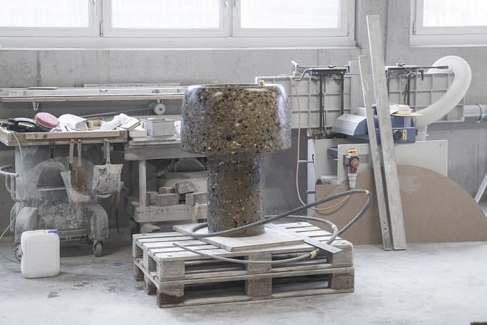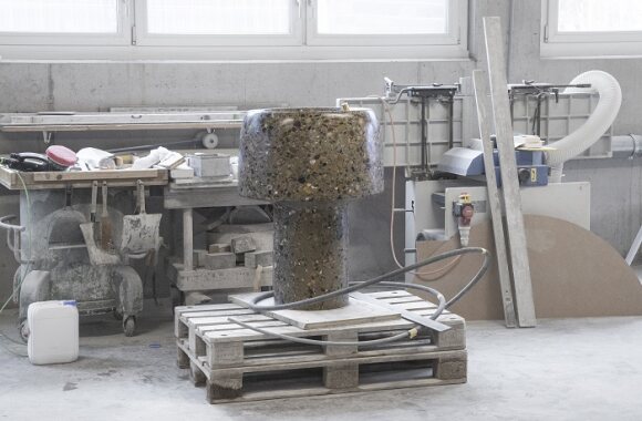 Der Emmer Trinkbrunnen wurde durch den Zürcher Architekten und Produktdesigner Stephan Hürlemann konzipiert. Mit seinem Entwurf wolle er das wertvolle Gut Wasser zelebrieren und das Trinken aus einem öffentlichen Brunnen als angenehmes Ritual gestalten, erläutert der 50-jährige Designer. Ein gewichtiges Augenmerk legte Hürlemann auf die Materialwahl. Der Terrazzo aus bunten Flusskieseln (in Zement beigemischt und geschliffen) würde dem Wasser im Becken optische Frische und Klarheit verleihen. «Mir gefällt die Vorstellung, der Brunnen sei aus einem Flussbett herausgeschliffen worden», sagt Hürlemann.