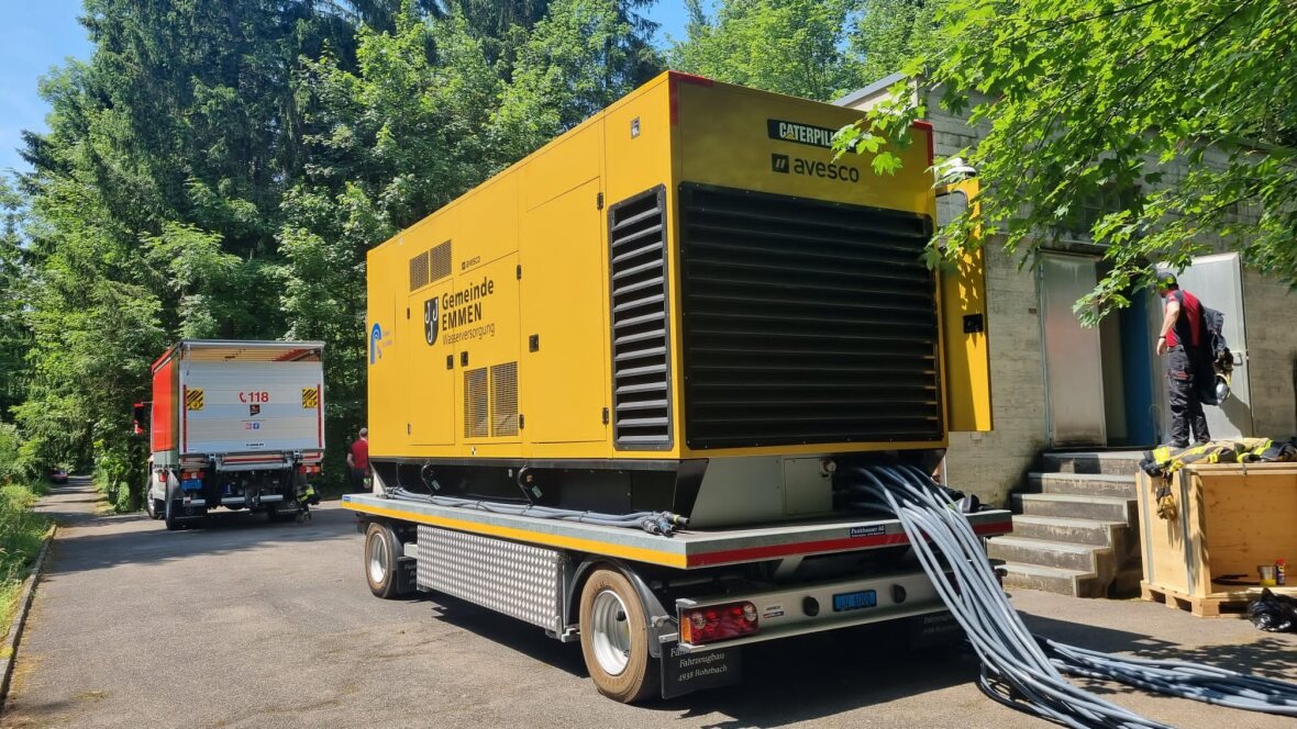 Höhepunkt der Übung war zweifellos das 18 Tonnen schwere Notstromaggregat der Marke Caterpillar, das in der AMP-Halle (Lager- und Logistikzentrum der Armee) abgestellt ist. Dieses Gerät ermöglicht es der Wasserversorgung Emmen, im Falle eines Stromausfalls das Pumpwerk bei Volllast mit Energie zu versorgen. Das Aggregat mit einer Dauerleistung von 720 Kilowatt wurde nach kurzer Instruktion mithilfe von Lastwagen an den Einsatzort, das Grundwasserpumpwerk Schiltwald, transportiert.